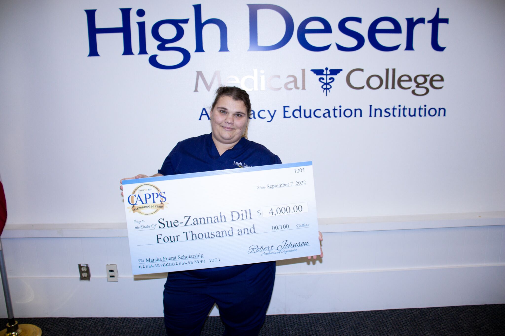 Congratulations Sue-Zannah Dill, for winning the CAPPS Marsha Fuerst scholarship! Sue-Zannah, a medical assisting student at HDMC, has been selected as the 2022 recipient of the Marsha Fuerst Memorial Scholarship, given by the California Association of Private Postsecondary Schools (CAPPS). High Desert Medical College specializes in training students for in-demand healthcare careers, and we are proud of Sue-Zannah, as well as all of our hardworking students. Sue-Zannah is pursuing her dream of becoming a medical assistant, and you can too – get started on your path, with healthcare career training from HDMC!